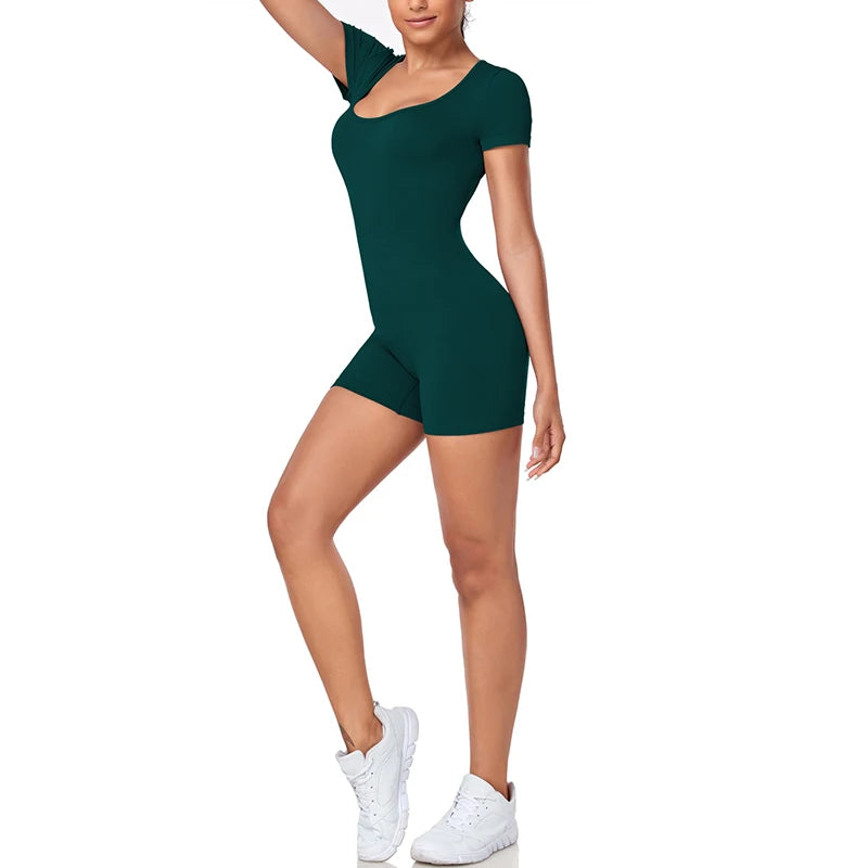 Stylish Comfort: Elevate your yoga wardrobe with our Yoga Short Jumpsuit Set, blending style and comfort seamlessly.
